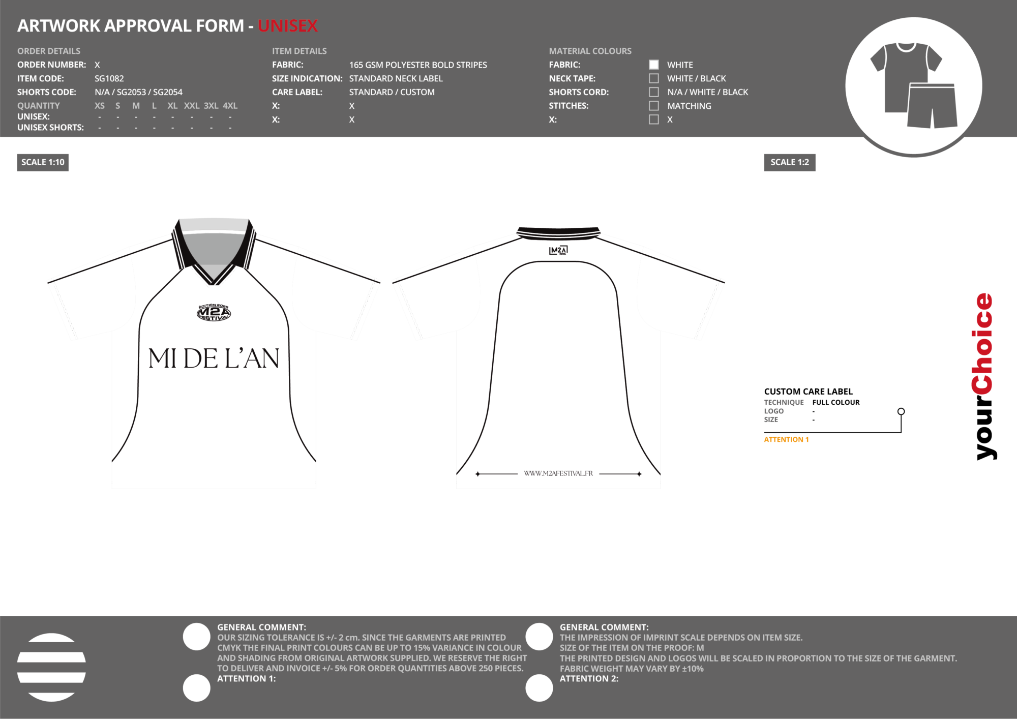 Chaque élément, du placement des logos à la création du guide des tailles, a été pensé pour offrir une cohérence parfaite entre l’image de marque du festival et les contraintes de production textile.
